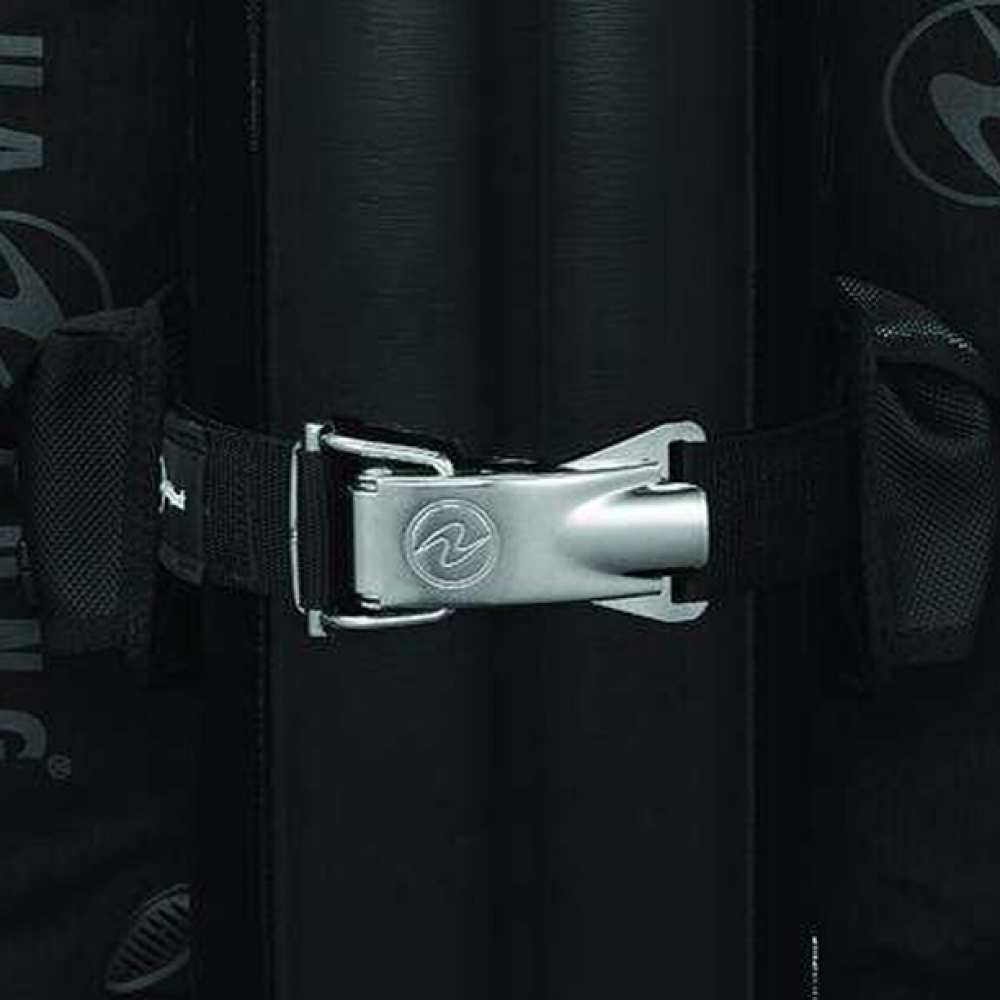 • Wrapture Harness System – Using patented swivel shoulder buckles and a proprietary, ultra-thin backplate, the Wrapture provides unsurpassed comfort and stability. Wrapture prevents the BC from “riding-up” on the surface. Out of the water, the Wrapture keeps the cylinder close to your center of gravity and transfers the weight to your hips. The result is the ability to stand up straight with a cylinder that is perfectly vertical.